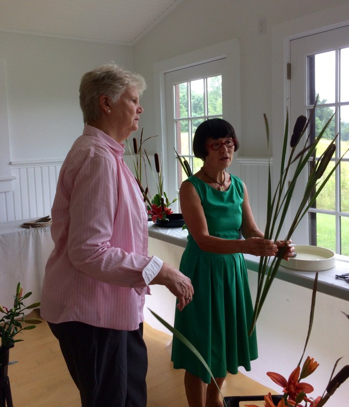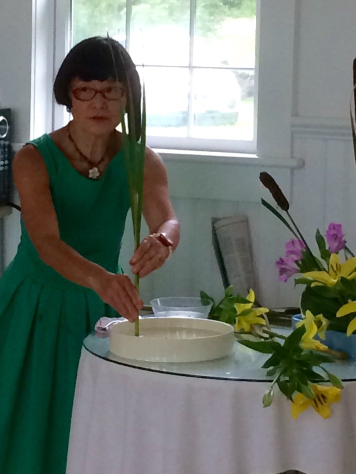 Ikebana floral arranging workshop with Master Instructor Hazue Tamura Rogers. Rae practices her newly learned skill.